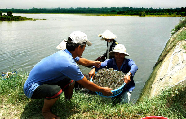 Thu hoạch tôm tại Cà Mau. Ảnh: T.L
