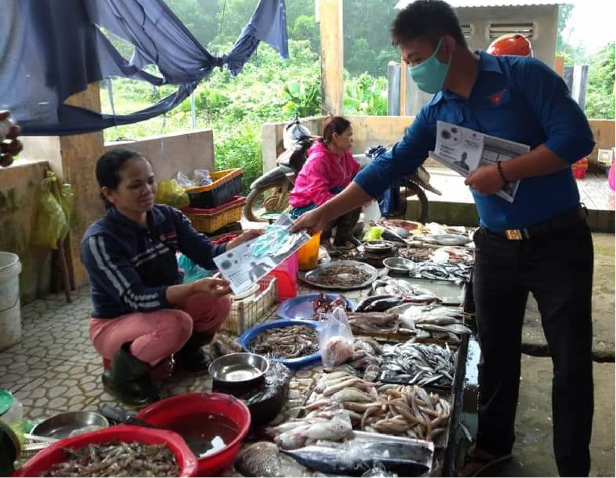 ĐVTN xã Hương Bình phát tờ rơi tuyên truyền phòng chống dịch COVID -19
