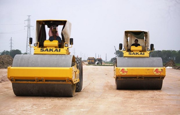 Nhà thầu thi công một dự án thành phần cao tốc Bắc-Nam phía Đông. (Ảnh: Việt Hùng/Vietnam+)