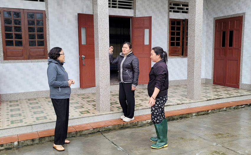 | Chị Trần Thị Quyên (bên trái ngoài cùng) thông tin vốn tín dụng chính sách đến người dân |