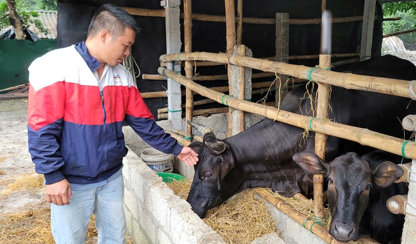 | Mô hình nuôi bò sinh sản của anh Nghị mang lại sinh kế cho gia đình |