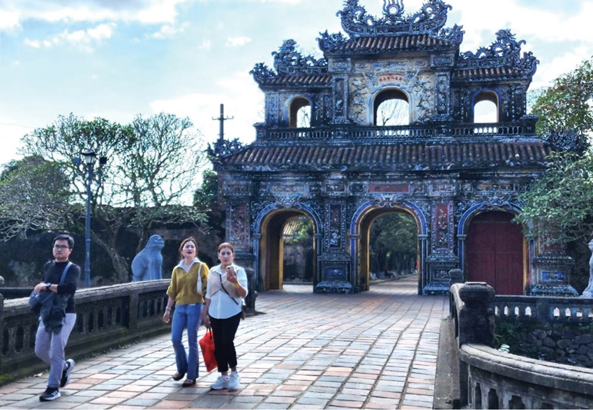 | Du khách tham quan tại các điểm di tích Cố đô Huế |