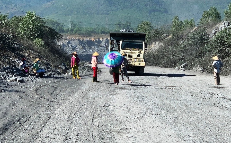 Người dân chặn xe vận tải tại khu vực mỏ đá nguyên liệu Phong Xuân