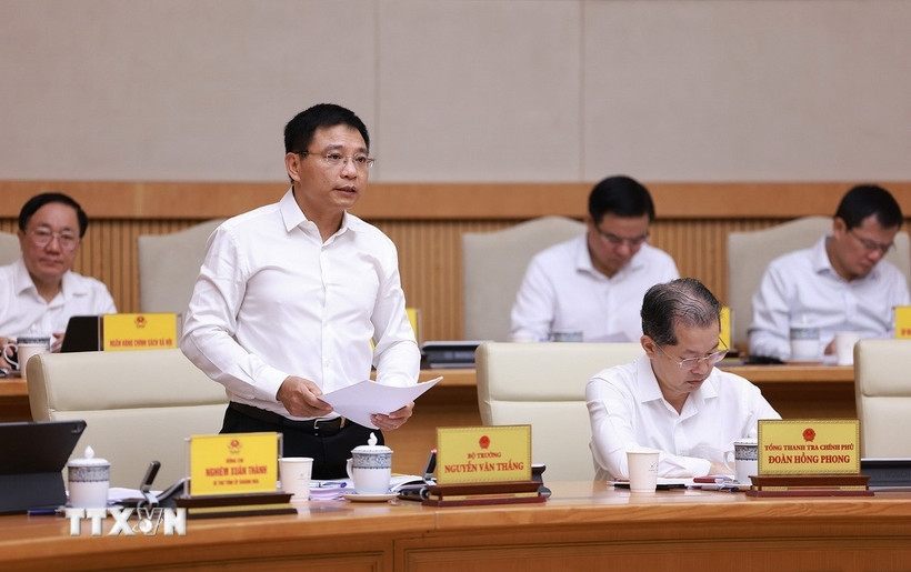 | Bộ trưởng Bộ Tài chính Nguyễn Văn Thắng báo cáo tình hình kinh tế-xã hội tháng 9 và 9 tháng năm 2025. (Ảnh: Dương Giang/TTXVN) |