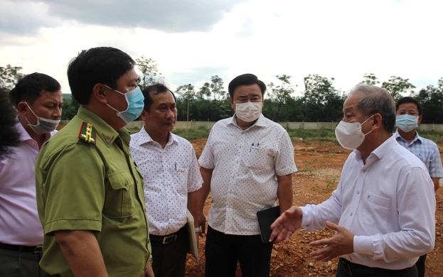 Phó Bí thư Thường trực Tỉnh ủy Phan Ngọc Thọ trao đổi với lãnh đạo các sở, ngành, địa phương tại hiện trường