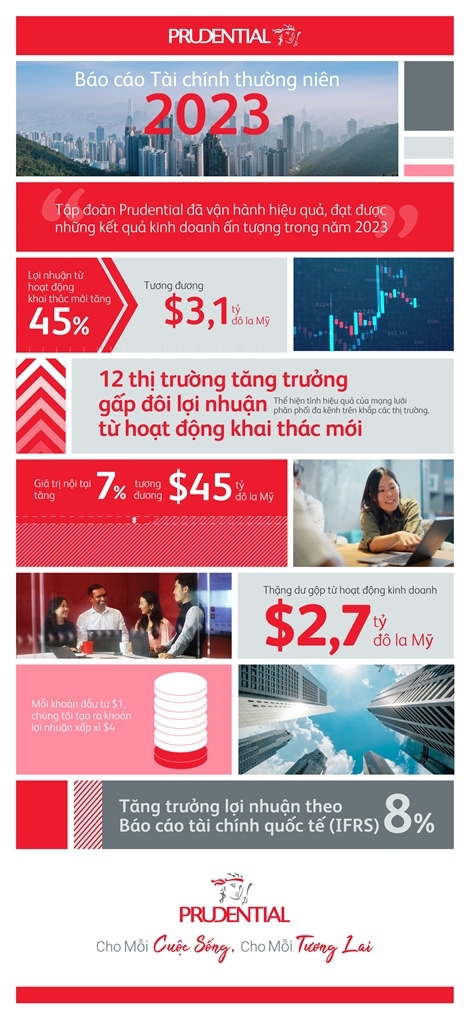 Ông Anil Wadhwani – Tổng Giám Đốc Tập đoàn Prudential cho biết: "Đây là một loạt những kết quả kinh doanh rất ấn tượng khi vận hành trong bối cảnh kinh tế vĩ mô đầy thách thức, với lợi nhuận từ hoạt động khai thác mới tăng 45% nhờ sự tập trung và các nỗ lực không ngừng nghỉ tại thị trường châu Á và châu Phi. Các kết quả này không chỉ minh chứng cho hoạt động hiệu quả của chúng tôi trên cả kênh đại lý và kênh hợp tác kinh doanh qua ngân hàng, mà còn khẳng định vị thế dẫn đầu của Prudential tại nhiều thị trường trọng điểm.”