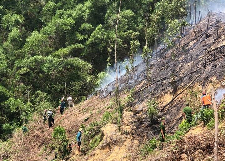 Lực lượng chức năng tại Nam Đông tham gia chữa cháy rừng Ảnh: UBND huyện Nam Đông