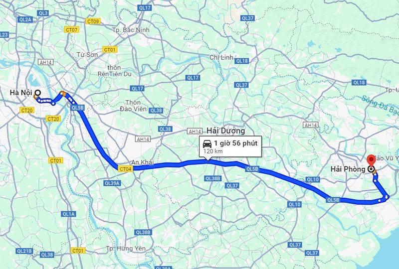 Quãng đường di chuyển từ Hà Nội đến Hải Phòng như thế nào?