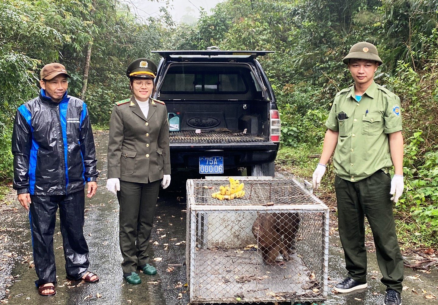 Sau khi tiếp nhận, chăm sóc và hoàn thiện hồ sơ về xử lý động vật rừng do người dân tự nguyện giao nộp Nhà nước theo đúng trình tự, thủ tục quy định của pháp luật, Hạt Kiểm lâm TX. Hương Thủy phối hợp với BQL rừng phòng hộ Bắc Hải Vân thả 2 cá thể khỉ nói trên về môi trường rừng tự nhiên.