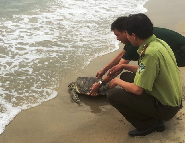 Sau khi tiếp nhận, Đồn Biên phòng Lăng Cô đã phối hợp với chính quyền địa phương, Ban Quản lý rừng phòng hộ Bắc Hải Vân và gia đình ông Nguyễn Văn Sinh tiến hành thả cá thể Vích quý này về biển lúc 8h30' cùng ngày.
