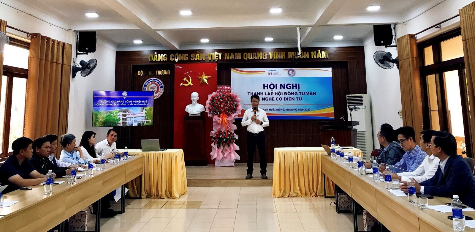 HNN.VN - Chiều 23/2, tại Trường cao đẳng Công nghiệp Huế (HueIC), Chương trình “Đổi mới đào tạo nghề Việt Nam”- GIZ phối hợp với HueIC tổ chức hội nghị thành lập Hội đồng tư vấn nghề Cơ điện tử theo tiêu chuẩn CHLB Đức tại Thừa Thiên Huế. Hội nghị có sự góp mặt của đại diện 16 doanh nghiệp (DN) có nhu cầu nguồn nhân lực ngành Cơ điện tử đến từ nhiều tỉnh, thành trong cả nước và các giảng viên chuyên ngành Cơ điện tử tại HueIC.