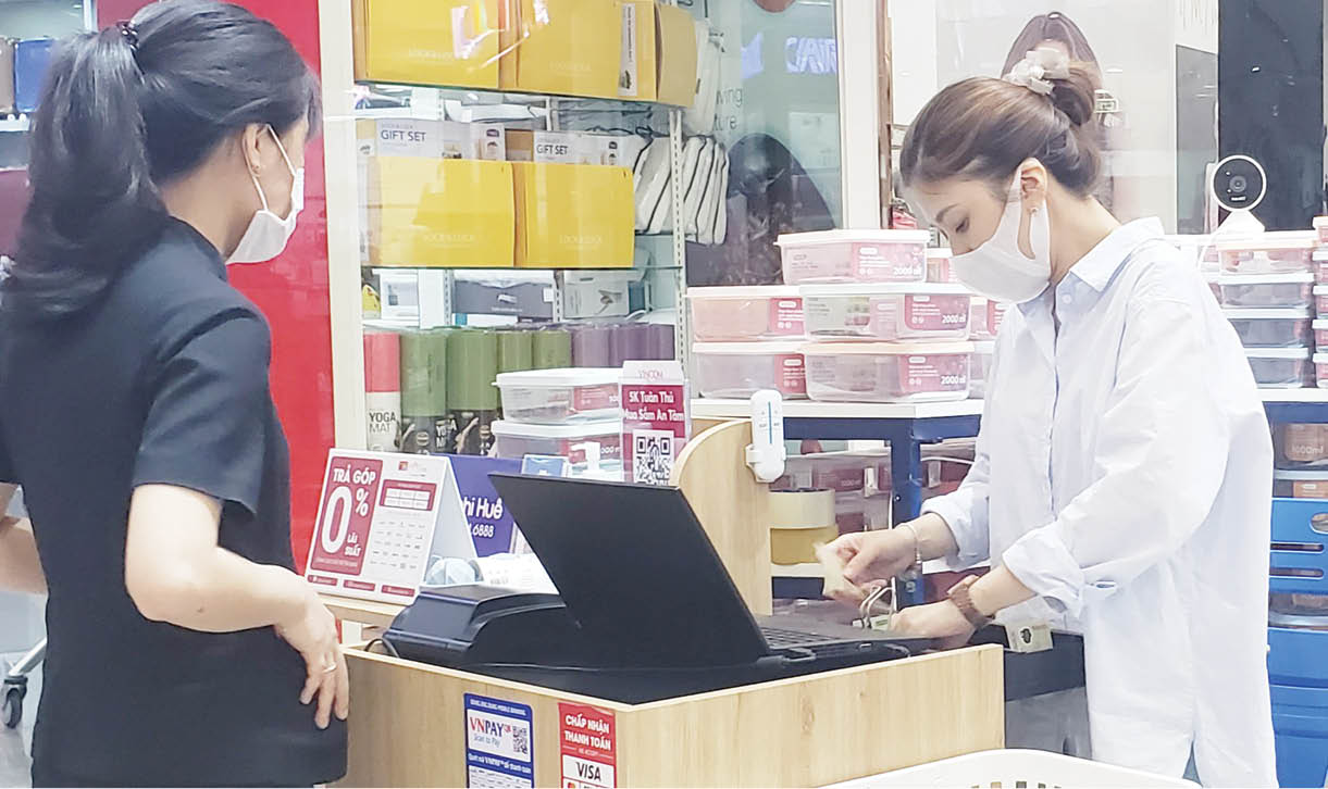 Tại các cửa hàng, nếu như trước đây chỉ có một hình thức thanh toán là tiền mặt thì bây giờ đã có thêm rất nhiều hình thức thanh toán khác thông qua các ứng dụng ngân hàng hay ví điện tử trên điện thoại di động, máy POS. Nhiều chủ cửa hàng cho biết, so với trước khi dịch bệnh diễn ra, số lượng người mua hàng chọn thanh toán không tiền mặt tăng khoảng 20-30%. Việc miễn phí giao dịch qua ngân hàng điện tử từ đầu năm 2022 mà nhiều ngân hàng đang áp dụng được xem là động lực trong thúc đẩy thanh toán không dùng tiền mặt.