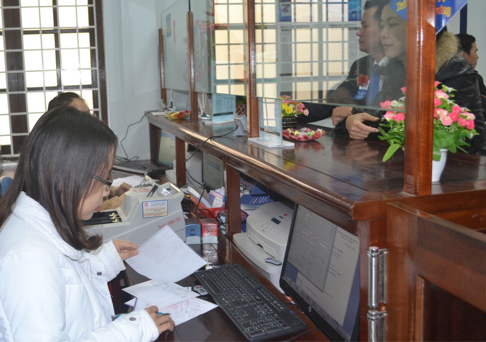 Giao dịch ở BIDV Thuận An. Ảnh: Linh Đan