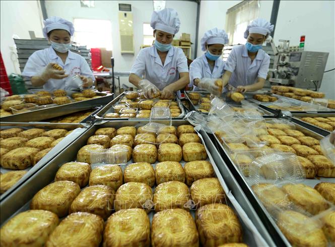 Đóng gói sản phẩm bánh Trung thu tại nhà máy của Công ty cổ phần Bánh mứt kẹo Hà Nội (Hanobaco). Ảnh tư liệu: Vũ Sinh/TTXVN