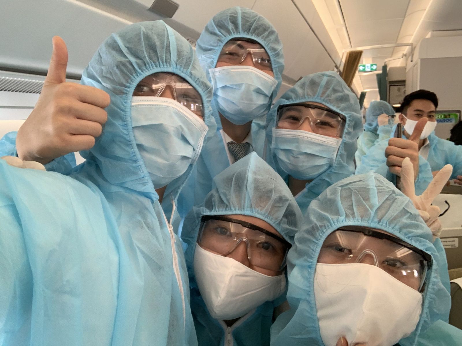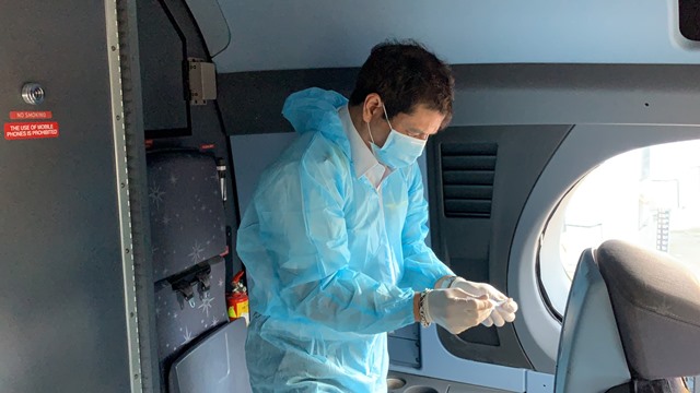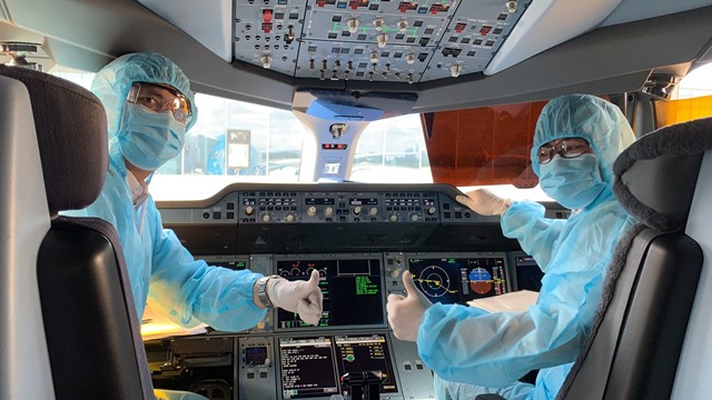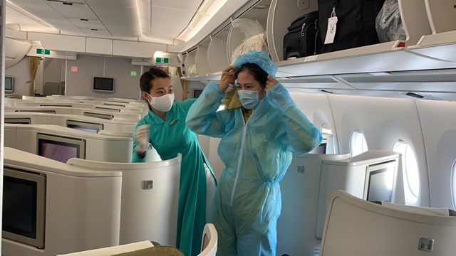 Trên mỗi chuyến bay, phi hành đoàn trang bị đồ bảo hộ y tế gồm áo mặc toàn thân