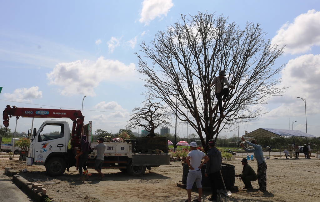 Thời tiết tạnh ráo, nắng đẹp cũng là cơ hội để bà con thuận lợi trong việc di chuyển cây, hoa. Cả ba khu chợ hoa xuân trên đường Lê Duẩn, khu đô thị An Cựu City và phía trước Trung tâm Thể thao tỉnh sáng 1/2 có rất đông chủ các lô hàng đưa hoa đến sắp xếp. Nhiều người đi đường vì thế cũng hào hứng đến xem, có người khảo giá, nhưng cũng có người chọn mua rất nhanh.