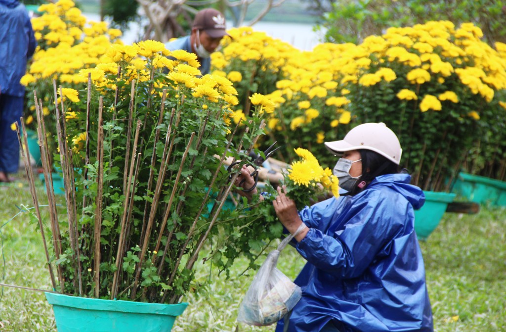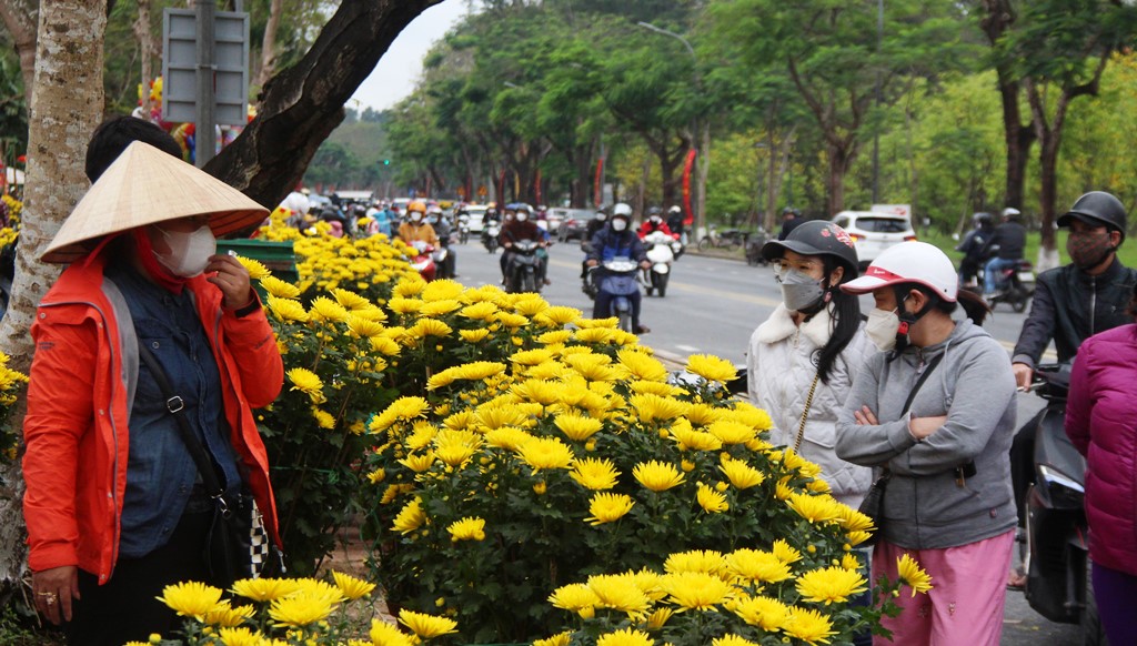 Đáng chú ý, với lượng hoa cúc Huế còn lại ở các khu chợ hoa đã được người dân lẫn tiểu thương đến mua và… cắt ngay tại chỗ. Theo người mua, thị trường hoa cắm cành ở các chợ truyền thống năm nay nhập về quá ít, trong khi giá lại “chát” nên họ quyết định mua từng chậu hoa, cắt ra từng cành để về cắm hoặc bán lại. “Tui mua cặp hoa cúc với giá 400.000 đồng, sau khi cắt cành rồi bán lại cũng lời được hơn 200.000 đồng”, một người bán hoa cành ở đường Chương Dương, sau lưng chợ Đông Ba, nói. Sau khi bán hết, người này lại tìm đến các khu chợ hoa để tiếp tục mua hoa chậu, cắt và đưa về bán lại.