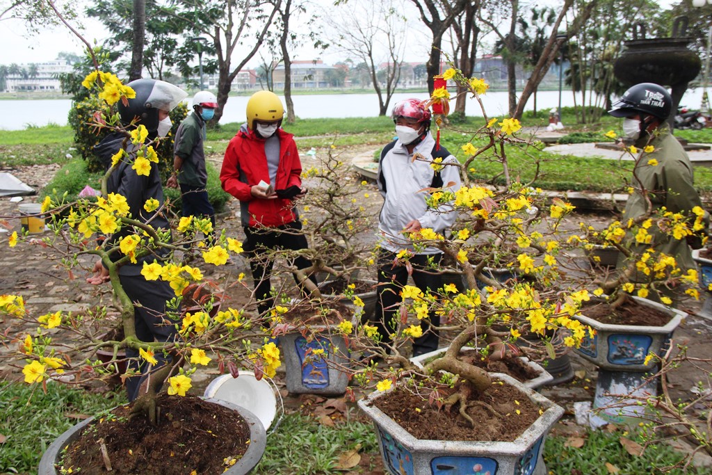 Mai được người dân Bình Định đưa ra Huế bán. Giá mỗi chậu chiều 29 Tết là 1,2 triệu