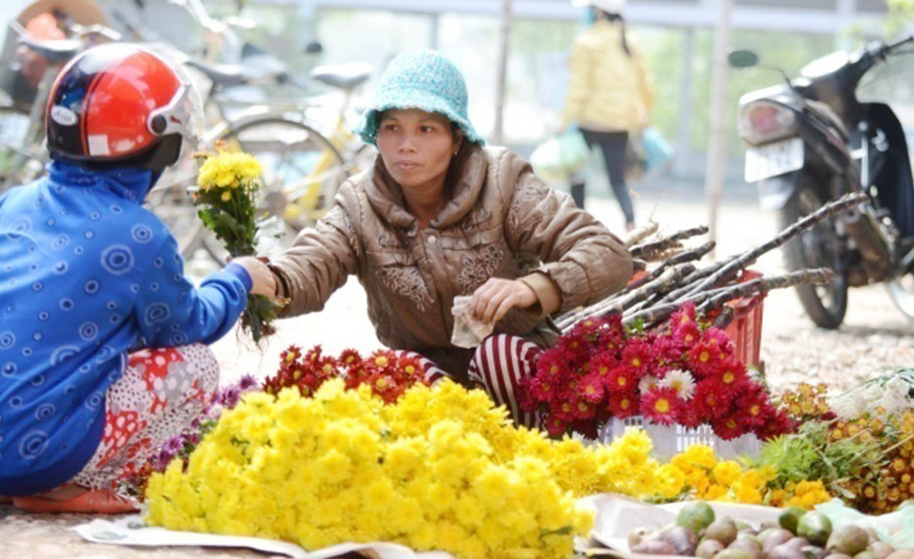 HNN - Thật ra nhiều nơi chợ quê đã mang hơi phố thị và chợ quê ngày giáp tết cũng chẳng khác mấy ngày thường, nhất là ở những hàng tôm cua cá mực. Có chăng bên lề đường, thảng hoặc ngay lối vào chợ, những hàng ông táo, những bó cúc, thọ vàng ươm, những mẹt bánh in bánh thuẫn gói giấy bóng xanh xanh đỏ đỏ cùng những nụ cười tươi rói như nhắc tết đã đến rồi…