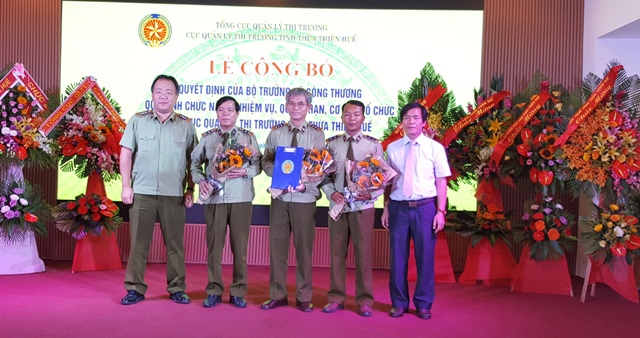 HNN.VN - Chiều 16/11, tại TP. Huế diễn ra lễ công bố Quyết định của Bộ trưởng Bộ Công thương quy định chức năng, nhiệm vụ, quyền hạn, cơ cấu tổ chức của Cục Quản lý thị trường (QLTT) tỉnh. Tham dự buổi lễ có ông Nguyễn Văn Phương, Phó Chủ tịch UBND tỉnh; ông Trần Hữu Linh, Tổng cục trưởng Tổng cục QLTT- Bộ Công thương và toàn thể cán bộ công chức QLTT tỉnh.