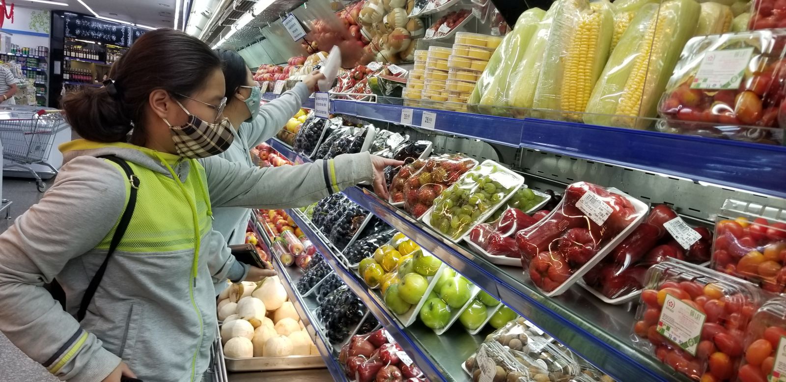 Khách hàng đến mua hàng trực tiếp tại siêu thị cũng tự bảo vệ bản thân bằng cách đeo khẩu trang và sử dụng các dung dịch sát khuẩn