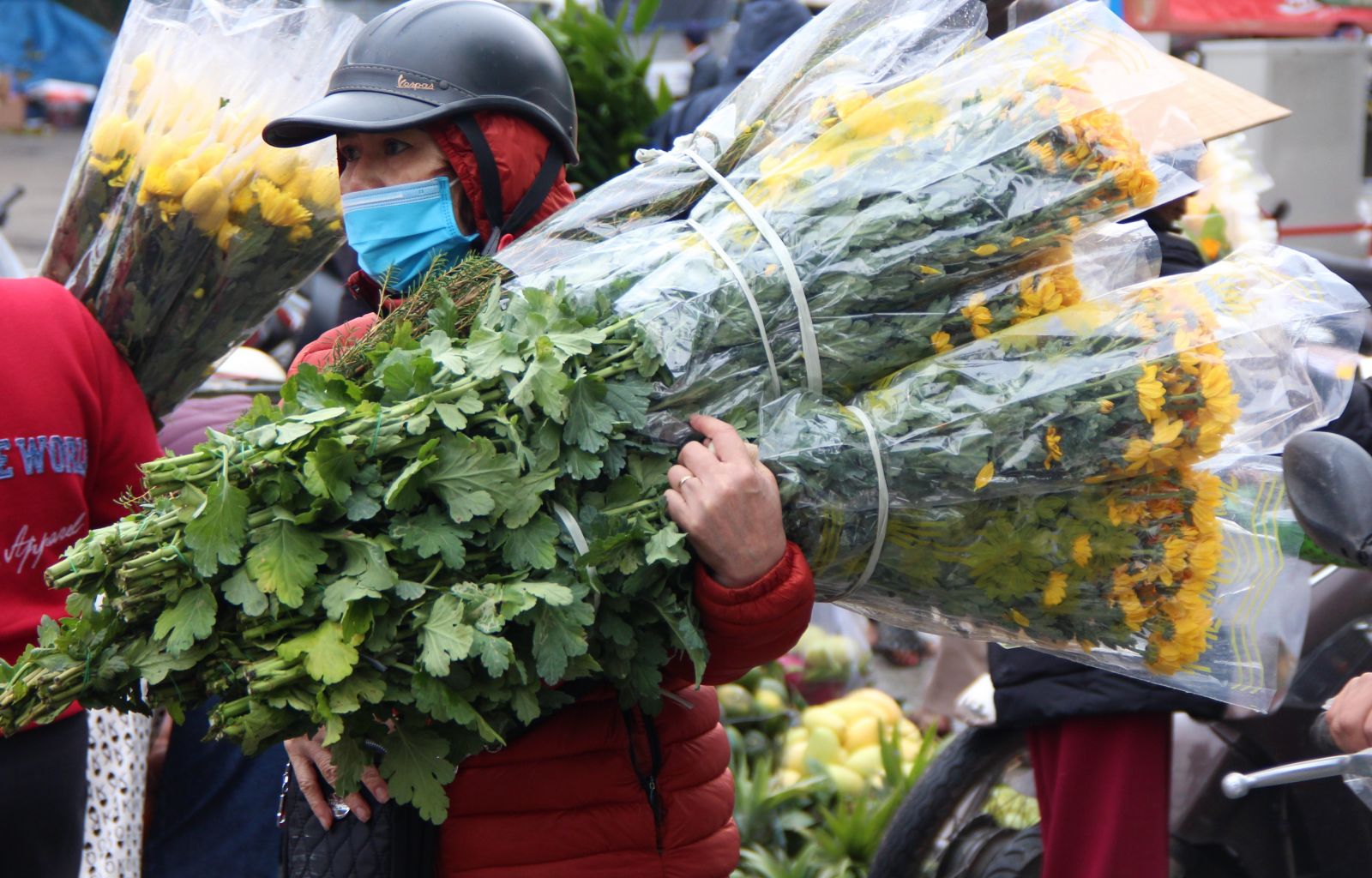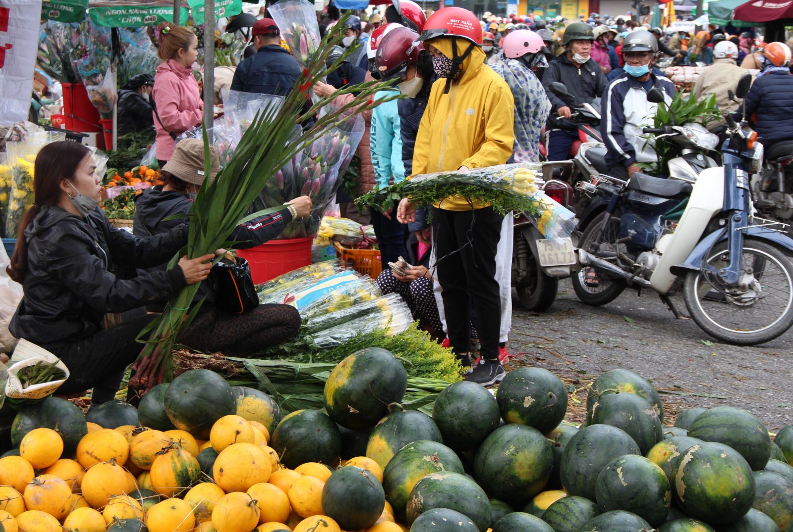 Tranh thủ trời tạnh ráo, rất nhiều người đã tìm về các chợ bày bán hoa cắt cành, trái cây đơm Tết để tìm mua những loài hoa, trái cây ưng ý nhất