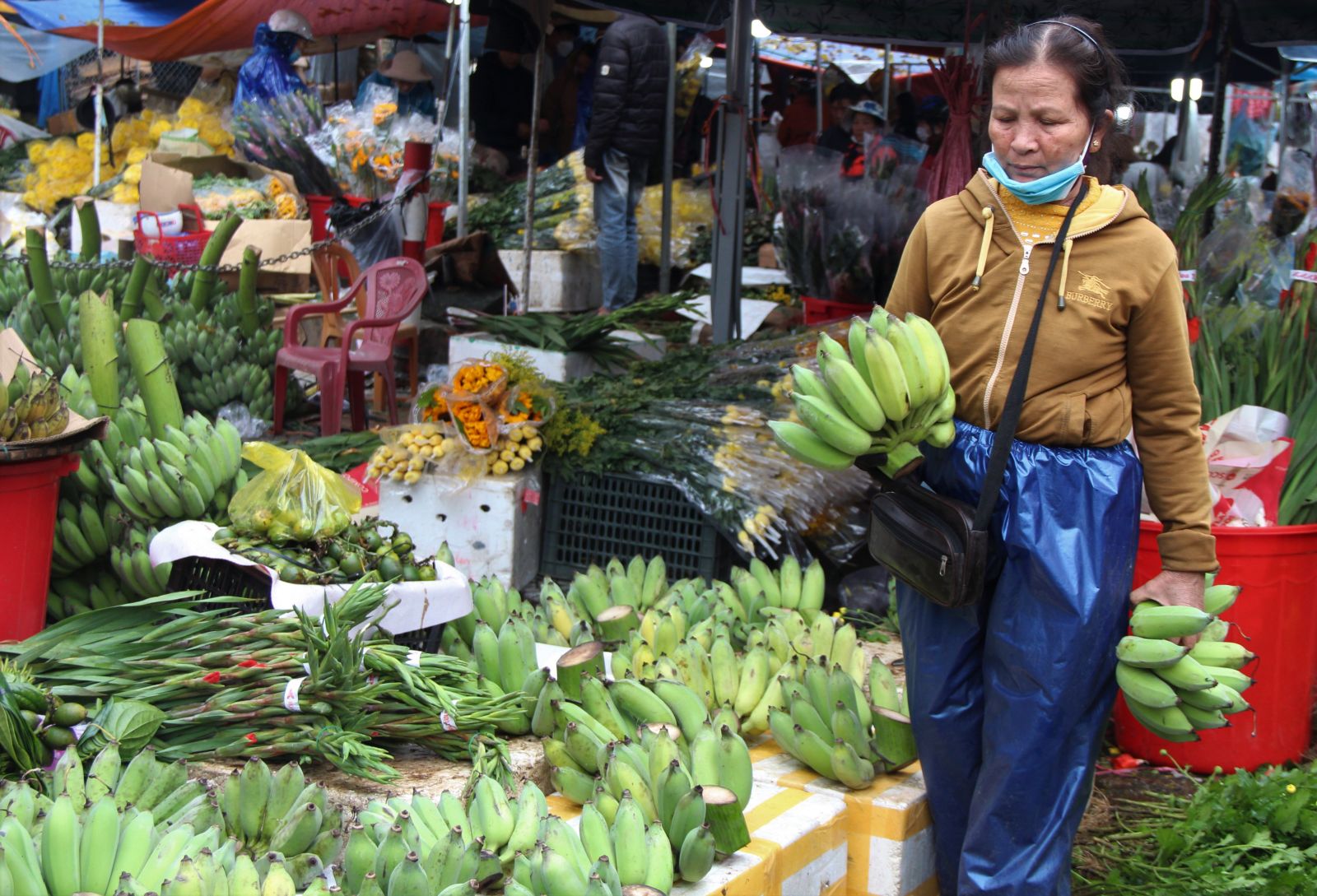 Cùng với đó, các loại trái cây nhập từ miền Nam ra như dưa hấu, bưởi da xanh, xoài, đu đủ… cũng giao động từ 30.000 – 70.000 đồng/kg tùy loại. Chuối cúng năm nay cũng được bán với giá cao, thời điểm này giá 1 nải chuối được người bán rao 200.000 đồng.