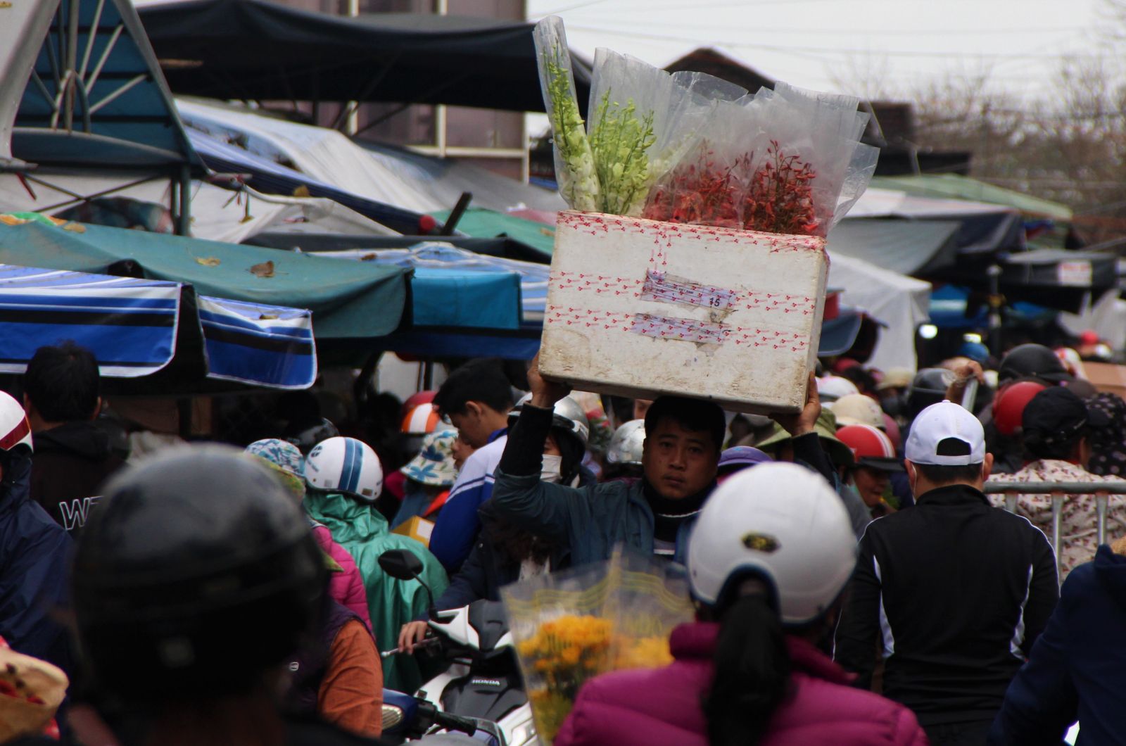 Khu vực tập trung đông nhất là các gian hàng hoa cắt cành và các loại trái cây tết được nhập từ nhiều nơi về. Cùng với tiếng rao của người bán là tiếng trả giá của người mua, tạo nên không khí vô cùng sôi động.