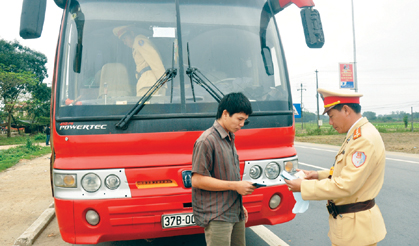 Cảnh sát giao thông kiểm tra xử lý xe khách chạy vào đường cấm