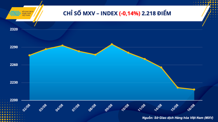 Lực bán chiếm ưu thế đã kéo chỉ số MXV-Index chốt ngày giảm 0,14% xuống 2.218 điểm, nối dài chuỗi giảm sang ngày thứ 5 liên tiếp. Trong khi đó, dòng tiền đầu tư ổn định trở lại, thể hiện qua giá trị giao dịch toàn Sở tăng liên tục 5 ngày, đạt trên 4.100 tỷ đồng.