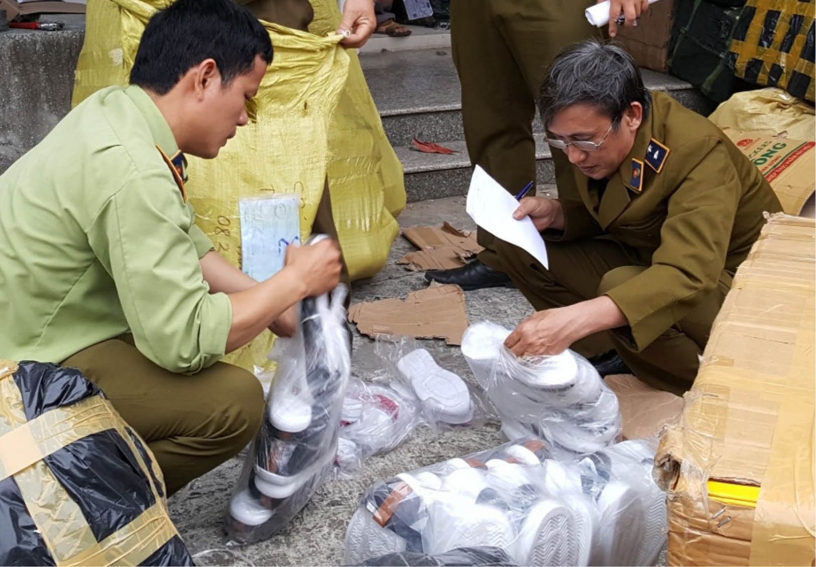Lực lượng quản lý thị trường kiểm đếm hàng hóa không rõ nguồn gốc, xuất xứ, không hóa đơn tuồn vào thị trường