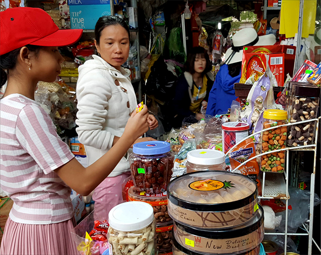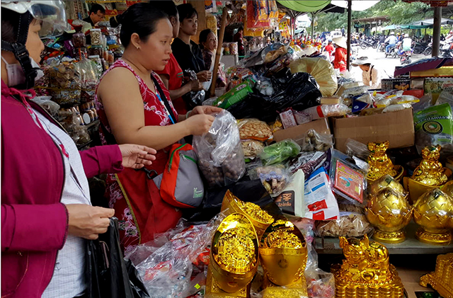 Chủ một trong những cửa hàng tạp hóa tại chợ Bến Ngự, chị Nguyệt Na, cho biết, các mặt hàng như bánh kẹo, mứt, hạt các loại, đồ khô, đồ uống dùng cho ngày tết sức mua chưa nhiều. Nhưng như mọi năm, đến ngày 30 tết, hàng sẽ "vơi sạch".