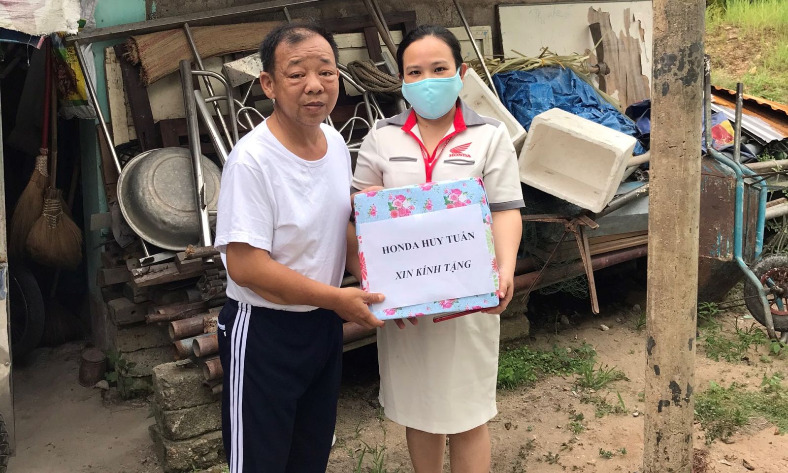 Dịp này, đại diện Honda Huy Tuấn còn đến thăm và tặng quà 10 hộ gia đình có hoàn cảnh khó khăn trên địa thành phố, mỗi suất quà trị giá 200 nghìn đồng.