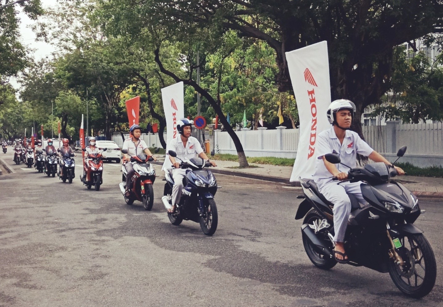 Đoàn diễu hành của Honda Huy Tuấn di chuyển trên các tuyến đường TP. Huế