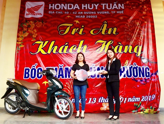 Dịp này, Honda Huy Tuấn trao 1 xe máy Vision phên bản TC và 1 xe máy wave RSX dành cho 2 khách hàng may mắn trúng thưởng: chị Trần Thị Tồn (Phú Hải, Phú Vang) và chị Nguyễn Thị Hải (Thủy Dương, Hương Thủy), cùng hàng trăm phần quà khác dành tặng những khách hàng tham gia chương trình.