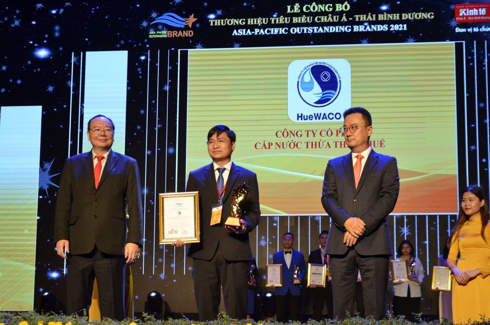 Ngoài ra, HueWACO còn vinh dự lọt Top 10 thương hiệu tiêu biểu châu Á- Thái Bình Dương trong hơn 1.000 hồ sơ tham dự. Dịp này, ông Trương Công Nam-Chủ tịch HĐQT HueWACO cũng vinh dự được bình chọn là nhà lãnh đạo tiêu biểu châu Á- Thái Bình Dương năm 2021.