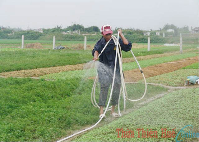 Làm đất chuẩn bị gieo giống rau (làng rau Thành Trung, xã Quảng Thành)