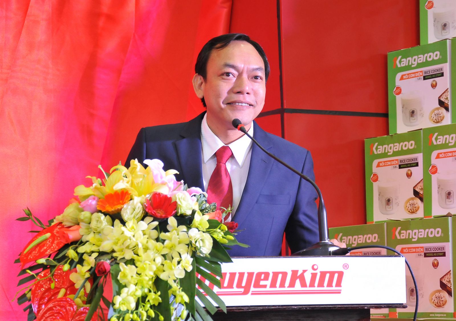 Ông Nguyễn Tiến Nghĩa, Giám đốc Vùng miền Đông, miền Trung và Tây Nguyên- Công ty CP Thương mại Nguyễn Kim phát biểu tại buổi lễ khai trương Trung tâm mua sắm Nguyễn Kim Huế