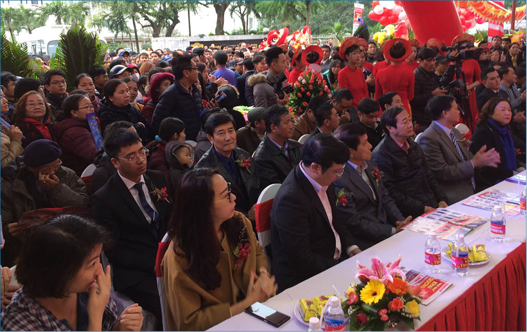 Đại diện lãnh đạo địa phương, các ban ngành và nhiều người dân tham dự lễ khai trương Trung tâm mua sắm vào sáng 1/2/2018