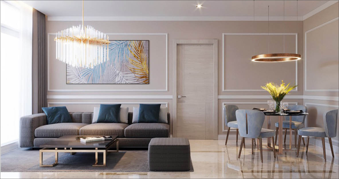 Căn hộ được tạo nên bởi không gian tinh tế, nhẹ nhàng, sang trọng