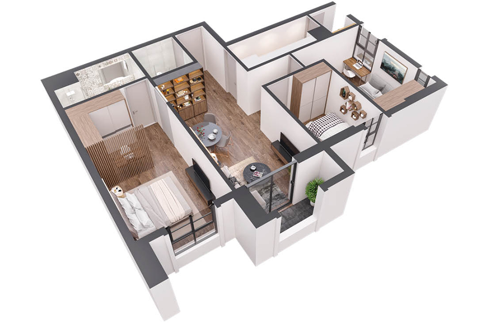Phối cảnh thiết kế căn hộ 3 phòng ngủ