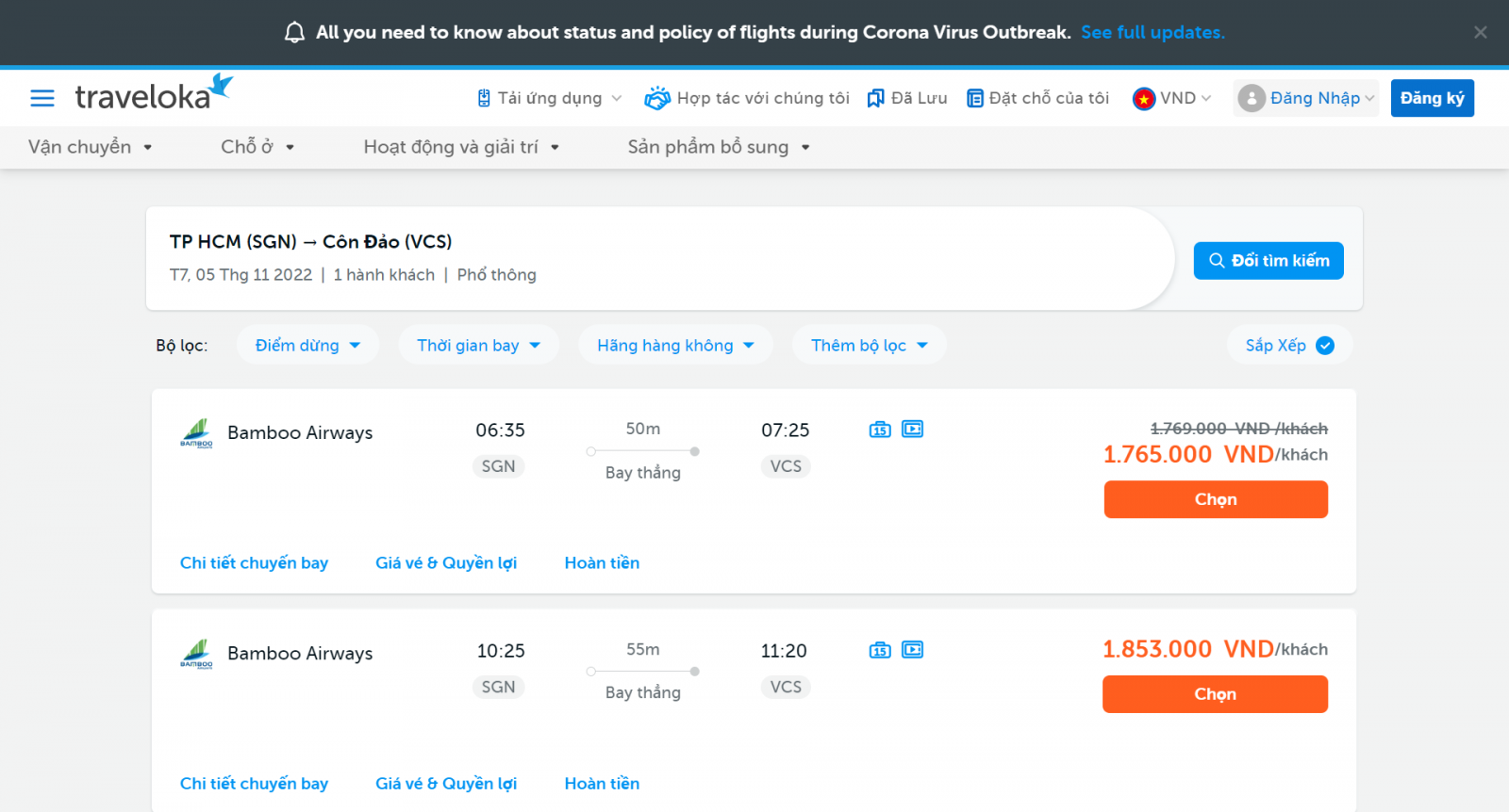 Lựa chọn chuyến bay