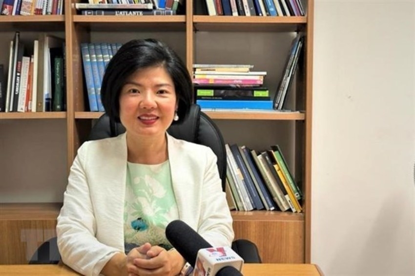 | Tham tán Thương mại Việt Nam tại Italy Dương Phương Thảo trả lời phỏng vấn của phóng viên TTXVN. (Ảnh: Trường Dụy/TTXVN) |
