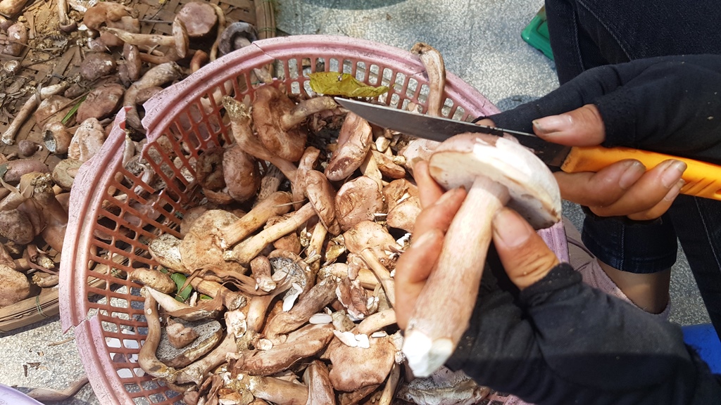 Những người "săn" nấm kể rằng, trung bình mỗi ngày họ hái được 30 - 50kg