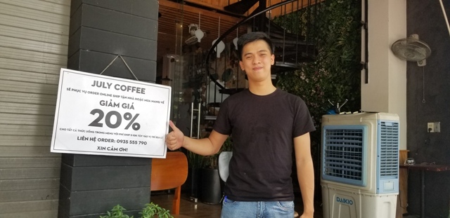 Tại quán cafe July ở 109 Nguyễn Huệ, TP. Huế, khác với không khí nhộn nhịp, đông đúc với lưu lượng từ 100- 120 khách đến uống cafe vào các buổi sáng hằng ngày, trong sáng 27/3, quán vẫn mở cửa đón khách, song chỉ nhận đặt hàng và giao cho khách tại quán, hoặc giao tận nhà theo địa chỉ chứ không phục vụ tại quán.