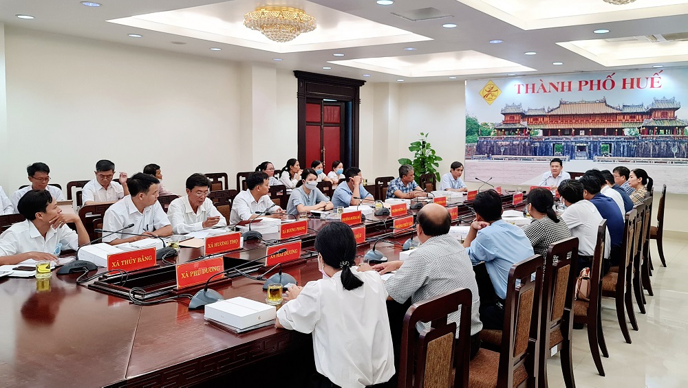 TUV, Phó Chủ tịch UBND tỉnh, Chủ tịch UBND TP. Huế Hoàng Hải Minh chủ trì cuộc họp với 13 xã, phường mới sát nhập vào TP. Huế