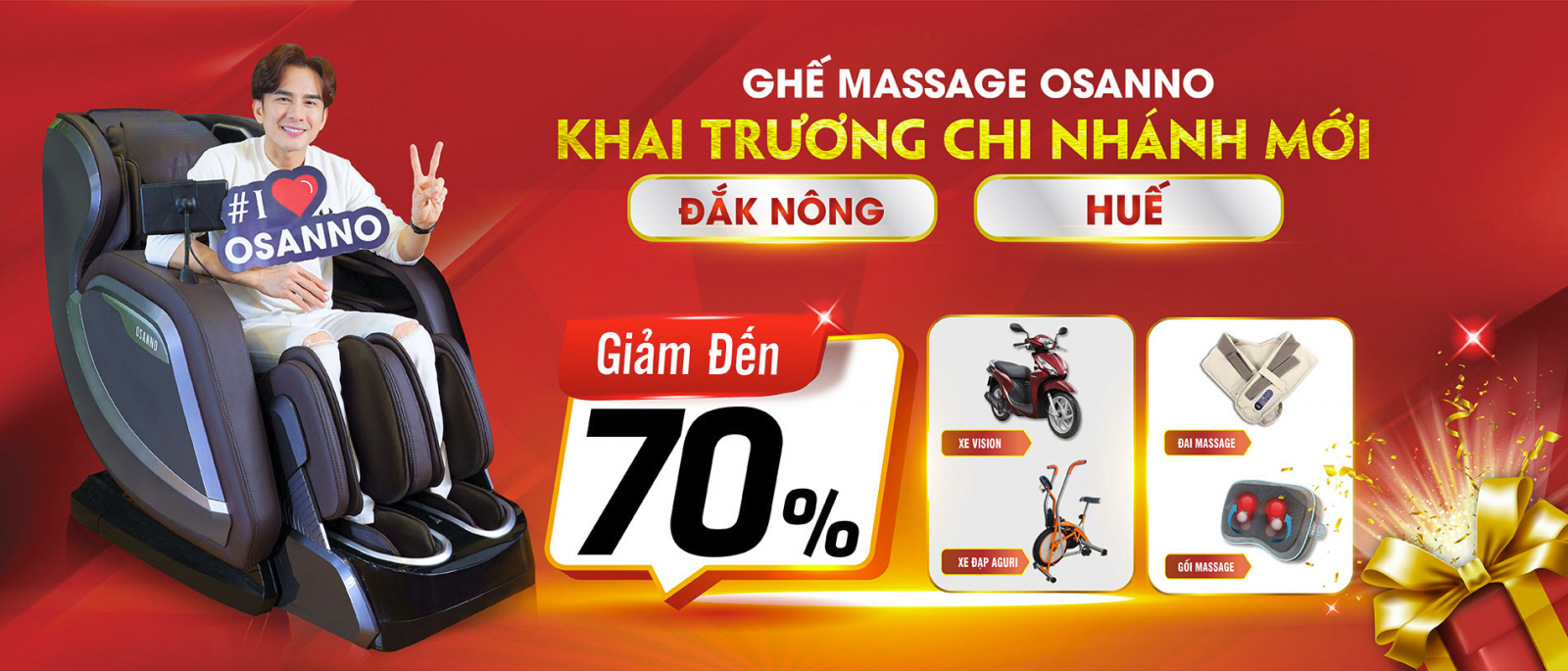 Nhân dịp khai trương và chương trình ưu đãi xuân 2022, chúng tôi còn có chính sách giảm giá lên đến 70% cho quý khách hàng, khi mua sắm trong ngày khai trương, đối với tất cả sản phẩm ghế massage Osanno, áp dụng cả mua online và trực tiếp.