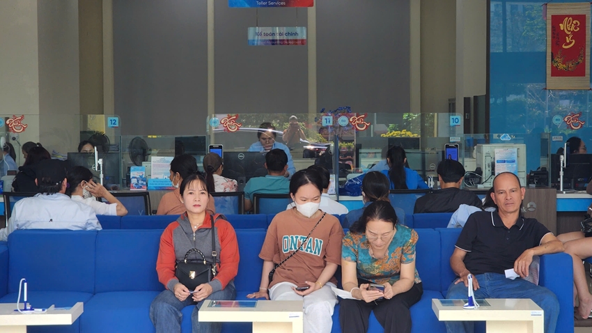 Tại Phòng giao dịch Ngân hàng TMCP Công thương Việt Nam (Vietinbank) chi nhánh Huế, lượng khách chờ đợi đến lượt giao dịch khá đông. Các dãy ghế đợi chật kín khách đợi đến lượt. Ngoài các quầy giao dịch, Vietinbank chi nhánh Huế cũng tăng cường lực lượng hỗ trợ, hướng dẫn khách hàng thực hiện các giao dịch đơn giản hoặc các giao dịch có thể thực hiện trên ngân hàng điện tử...
