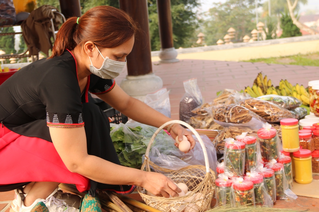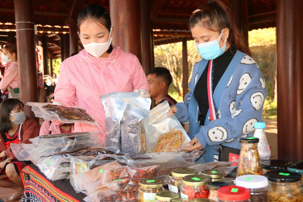 Với hơn 34 gian hàng đến từ các hợp tác xã và cá nhân trên địa bàn huyện và diễn ra trong hai ngày (28 - 29/1), phiên chợ tái hiện không gian đời sống sinh hoạt, lao động sản xuất của đồng bào dân tộc thiểu số, với các hoạt động mang đậm bản sắc văn hóa của vùng cao biên giới. Nhiều trò chơi, hoạt động được tổ chức cùng với phiên chợ như: A chất cõng người yêu, thi giã gạo, thi làm bánh Aqoatq, thi đan gối…