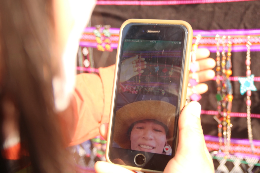 Gọi video về nhà để người thân chọn mua sản phẩm tại phiên chợ